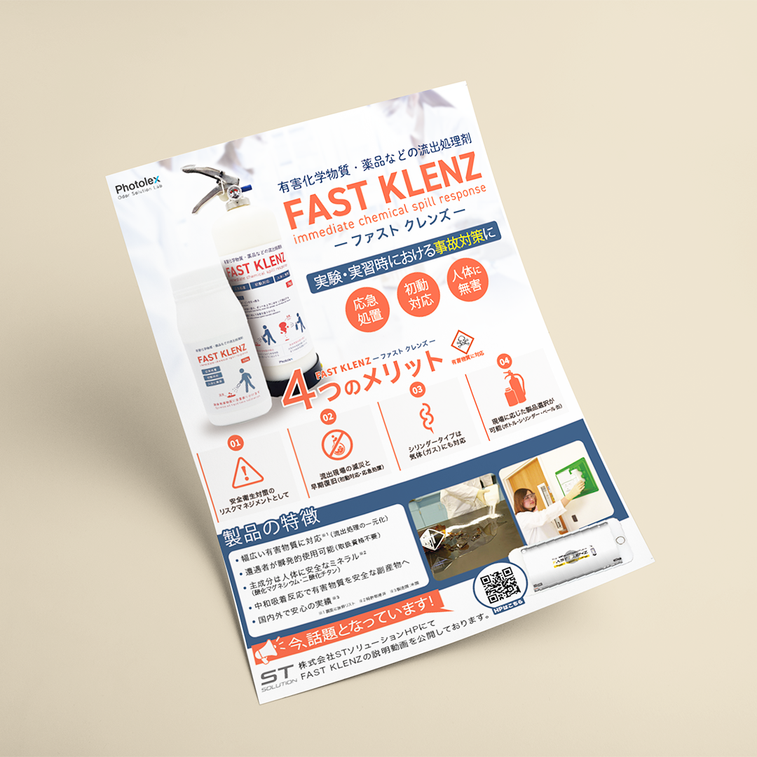 既存のチラシのリニューアルで、新たにチラシを制作させていただきました。 商品パッケージと同じカラーリングでまとめ、白を基調とすることでスッキリとした見た目に。 メリットはアイコンを使用することで、文章を読まなくてもイメージできるように配慮しました。
